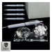 Portapenne eleganti e raffinati con base in vetro e dettaglio centrale in cristallo brillante. Il Portapenne è decorato con un'icona in cristallo su cui è applicato un Quadrifoglio Portafortuna in lamina argentata che raffigura l'Albero della Vita.