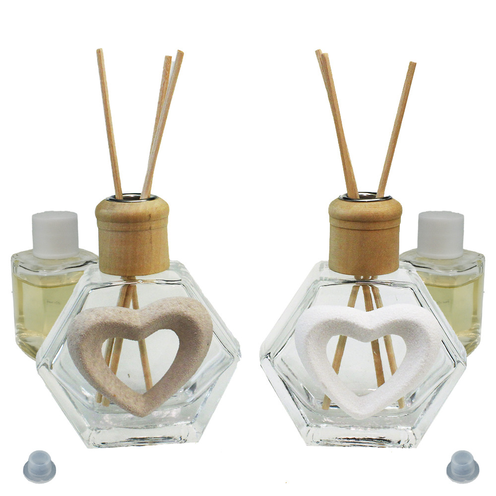 Il profumatore è arricchito da un'icona in resina a forma di cuore cuoricino, in due varianti assortite di colori: bianco e panna.